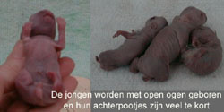 Deze afwijking is dus duidelijk anders dan de alom bekende lethaalfactor (dwergfactor die dubbel voorkomt of homozygoot is) Tlen jaar geleden was deze afwijking in Nederland en Belgie nog volkomen onbekend bij fokkers en keurmeesters. Nu zullen ongetwijfeld diverse lezers deze beschrijving wel herkennen. Helaas is deze afwijking inmiddels vrij algemeen aanwezig in onze streken, zeker in bepaalde kleurslagen. De grote invloed van Duitse import binnen ons ras heeft ook deze erfelijke afwijking meegebracht. Hebt u deze afwijking in uw stal nog nooit gezien, dan mag u zich gelukkig prijzen en extra voorzichtig zijn met het inbrengen van nieuw bloed. Het zal niet gemakkelijk zijn de verdere opmars van deze afwijking te keren, aangezien Maxdragers alom verspreid zijn. De vererving geschiedt uiteraard recessief, maar mogelijk ook autosomaal. We kunnen gerust spreken van een tijdbom onder ons dwergenbestand. |