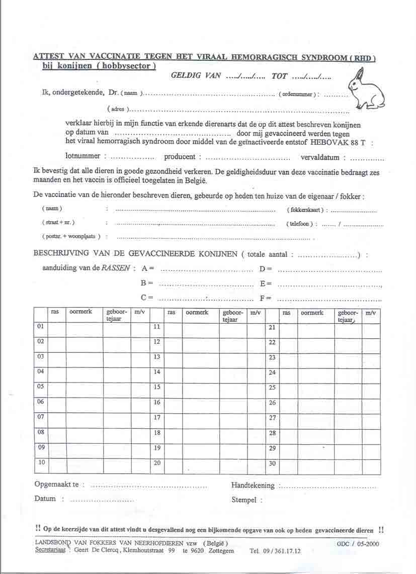 Dit formulier hebt u nodig op de tentoonstelling .Klik op de foto om te vergroten, print af en laat het invullen door uw erkende dierenarts